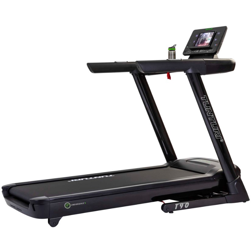 De Tunturi T90 Endurance loopband heeft een T-flex Comfort Top schokdemping en een Cross TIP anti-slip loopmat van 1,8mm om stabiel en veilig te bewegen. De loopplaat heeft een dikte van 21mm en een max. gebruikersgewicht van 150kg.
